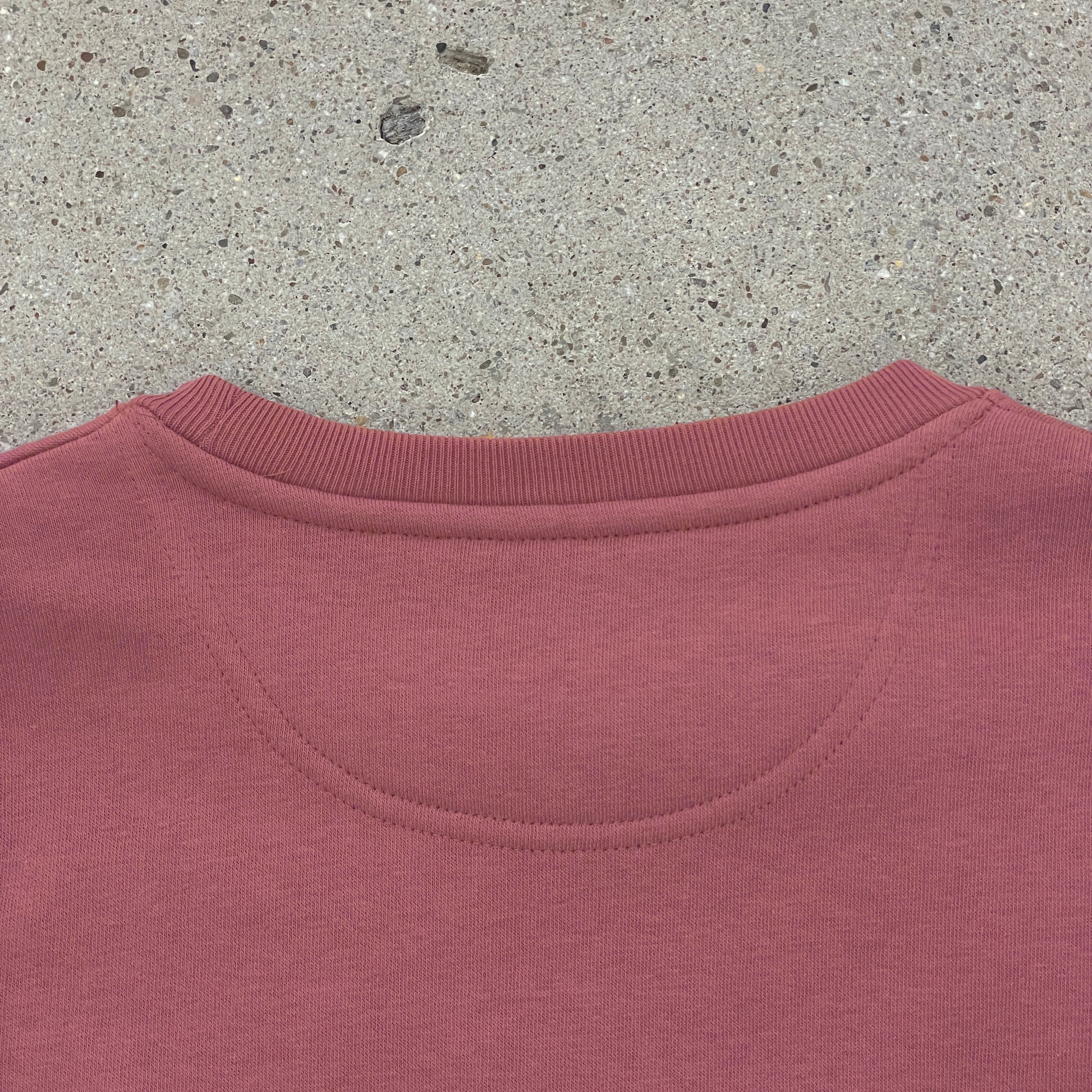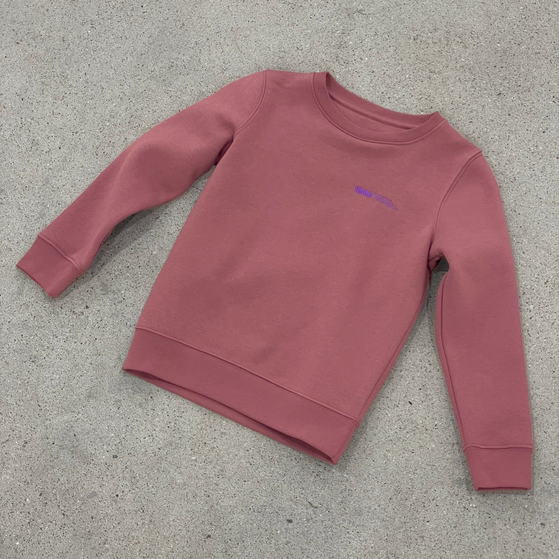 The sweatshirt is made in Portugal from heavyweight organic cotton jersey with a ribbed crewneck collar. Features a purple contrast embroidery.
