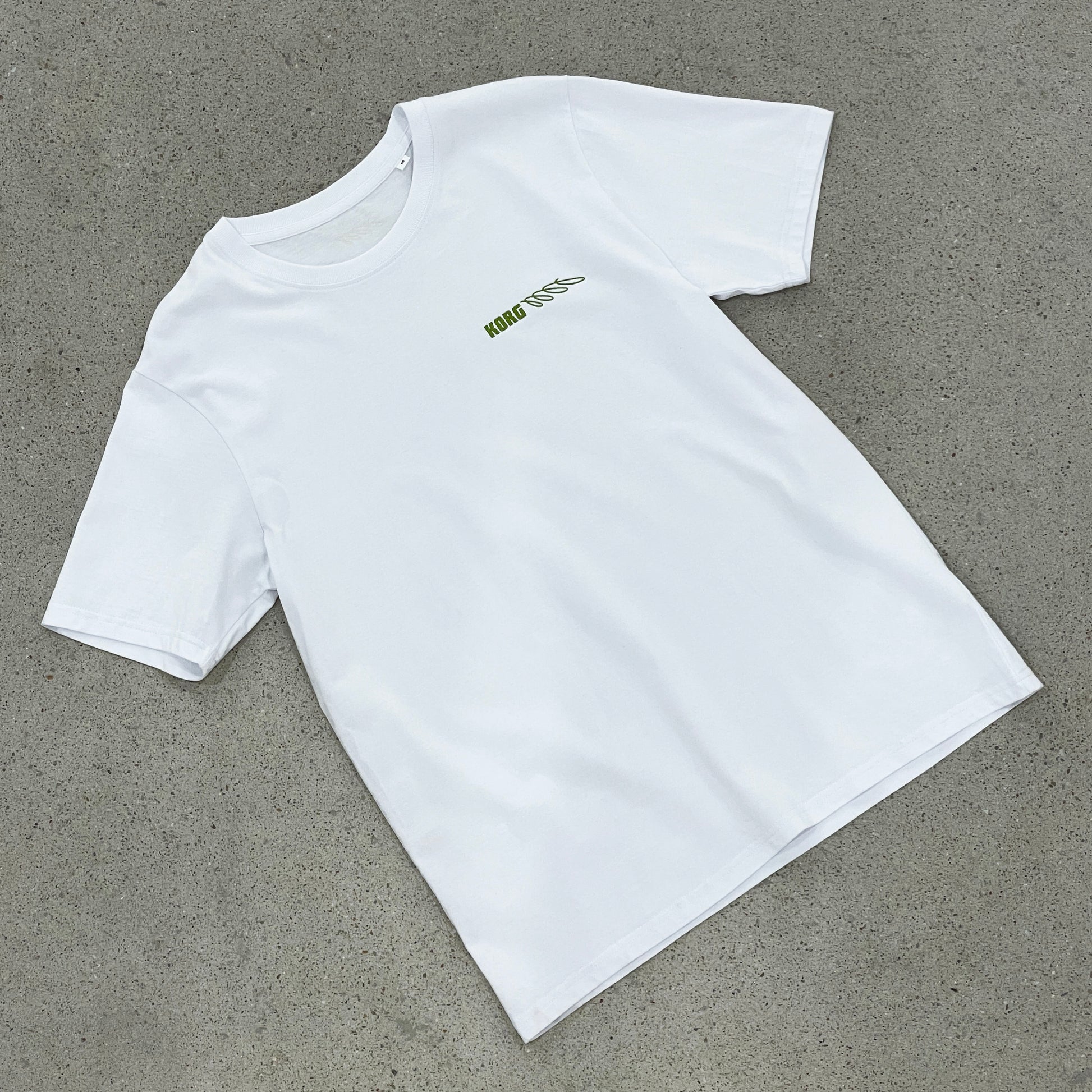 Our white T-Shirt is made in Portugal from 100% Organic Cotton, following a relaxed silhouette and green embroidered logo at the front. For more details, consult our size chart. We recommend men true to size and women a size down.